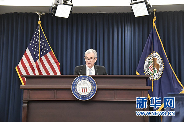 3月21日,在美国首都华盛顿,美国联邦储备委员会主席鲍威尔在新闻发布会上讲话。新华社记者 杨承霖 摄